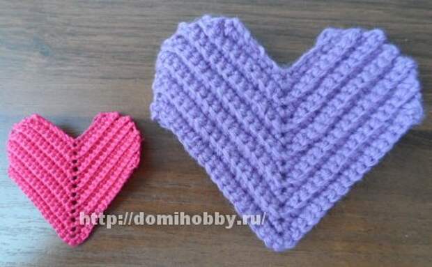 От толщины нити и номера крючка для вязания зависит размер связанного сердечка.